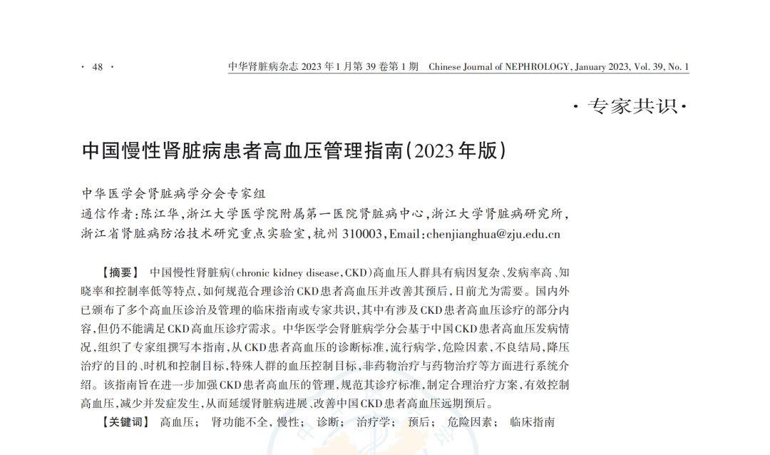 《中國(guó)慢性腎臟病患者高血壓管理指南(2023年版)》推薦——