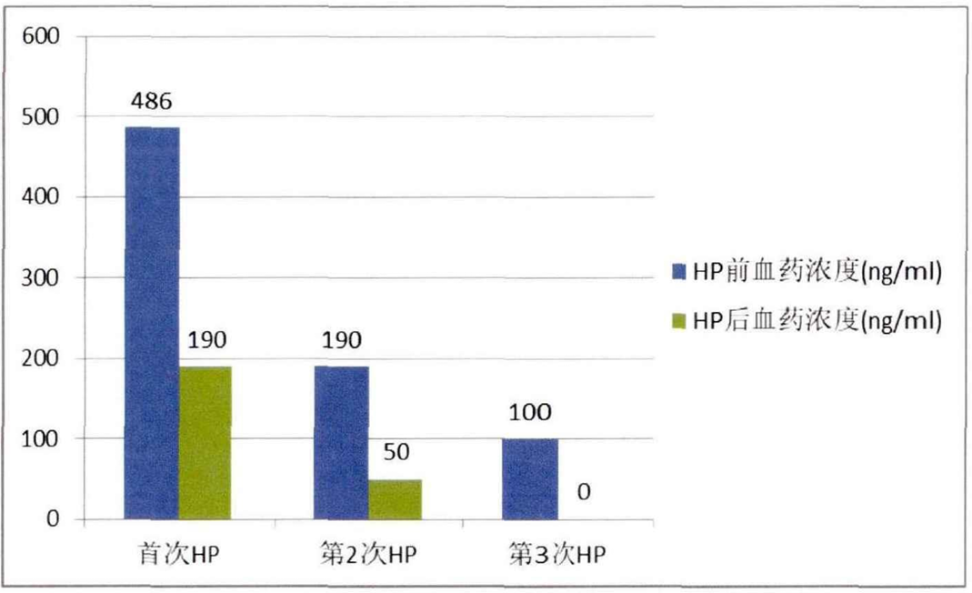 圖2 急性有機磷中毒患者血液灌流不同次數后的血藥濃度