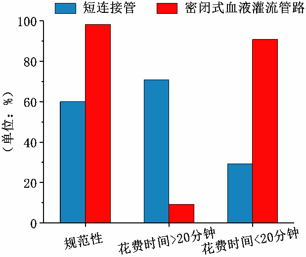 使用短連接管時,血液灌流結束后需拆除灌流器和短連接管,管路中的血液不可避免與空氣接觸,若操作時間過長可能導致透析器及管路凝血。使用密閉式管路可避免因管路暴露于空氣而引發的凝血事件。